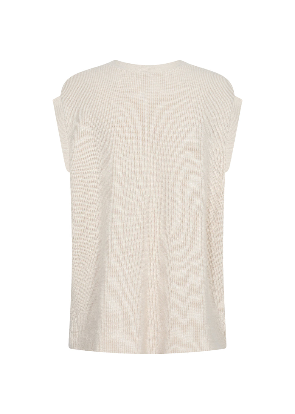 SC-KANITA 18 is a knitted waistcoat composed of 50% ECOVERO Viscose, 27% Polyester, 23% Nylon. This waistcoat features a v-neckline, a button-down front, patch pockets, and a ribbed texture. Pairing this waistcoat with tailored trousers or a skirt will create a refined look suitable for a variety of occasions.