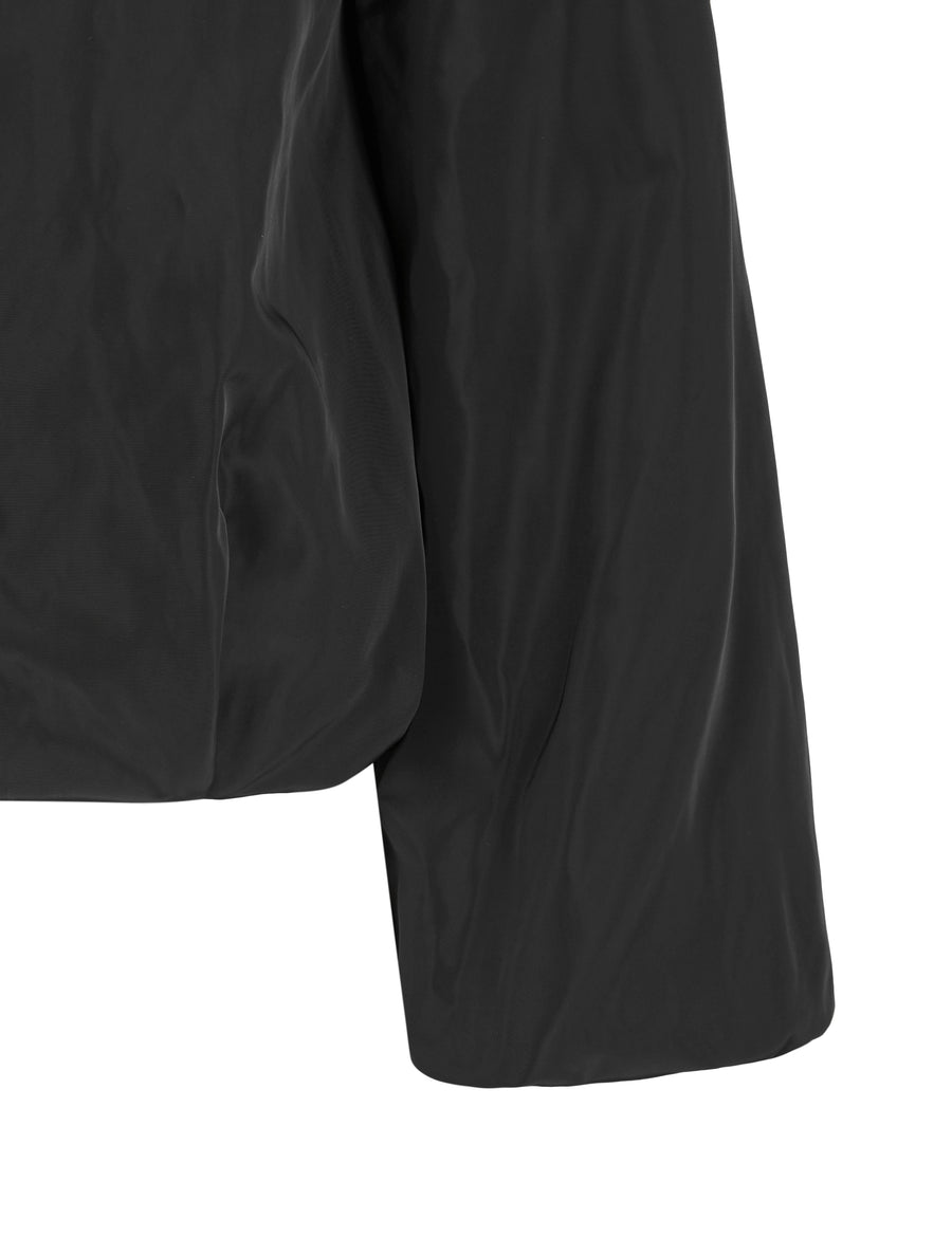 This loose-fit blouse features a round neck and long sleeves with added volume from pleats for a flattering shape. The front zipper closure adds a modern touch, and it's made with GRS-certified materials