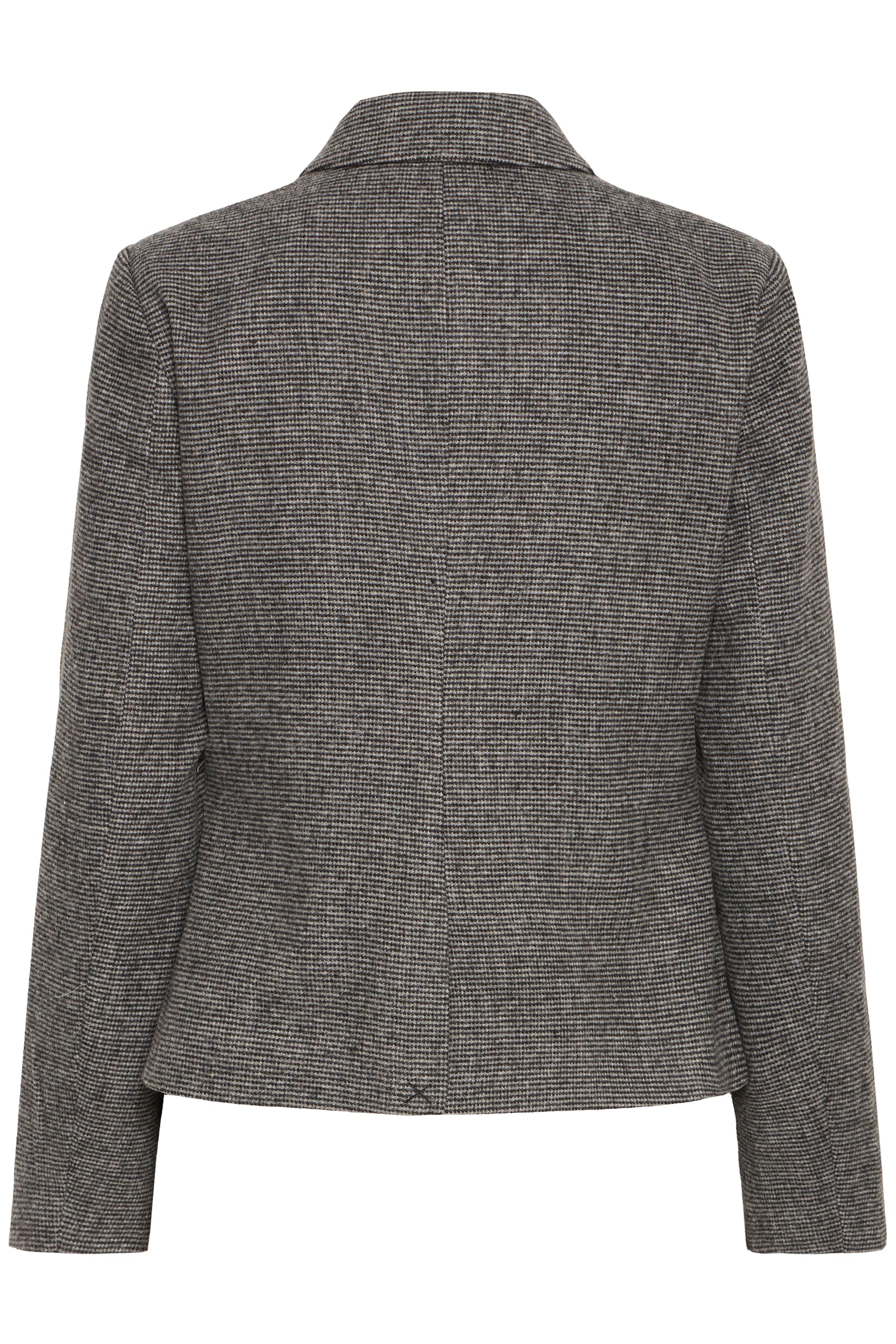 This sleek, short fitted jacket in a subtle Puppy Tooth check is a versatile addition to your wardrobe. Pair it with matching trousers for a modern suit look or dress it down with barrel jeans and a white tee for effortless casual style. It features a shirt-style collar, button-through front, and jetted flap pockets for a polished finish.