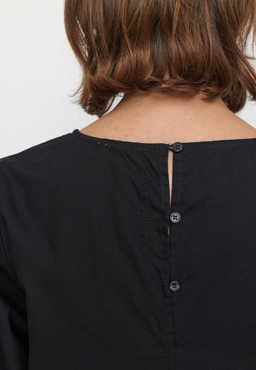 This dress features elbow-length sleeves with pleats, a slit at the back adorned with logo embroidery, and convenient side seam pockets for a stylish and functional addition to your wardrobe.