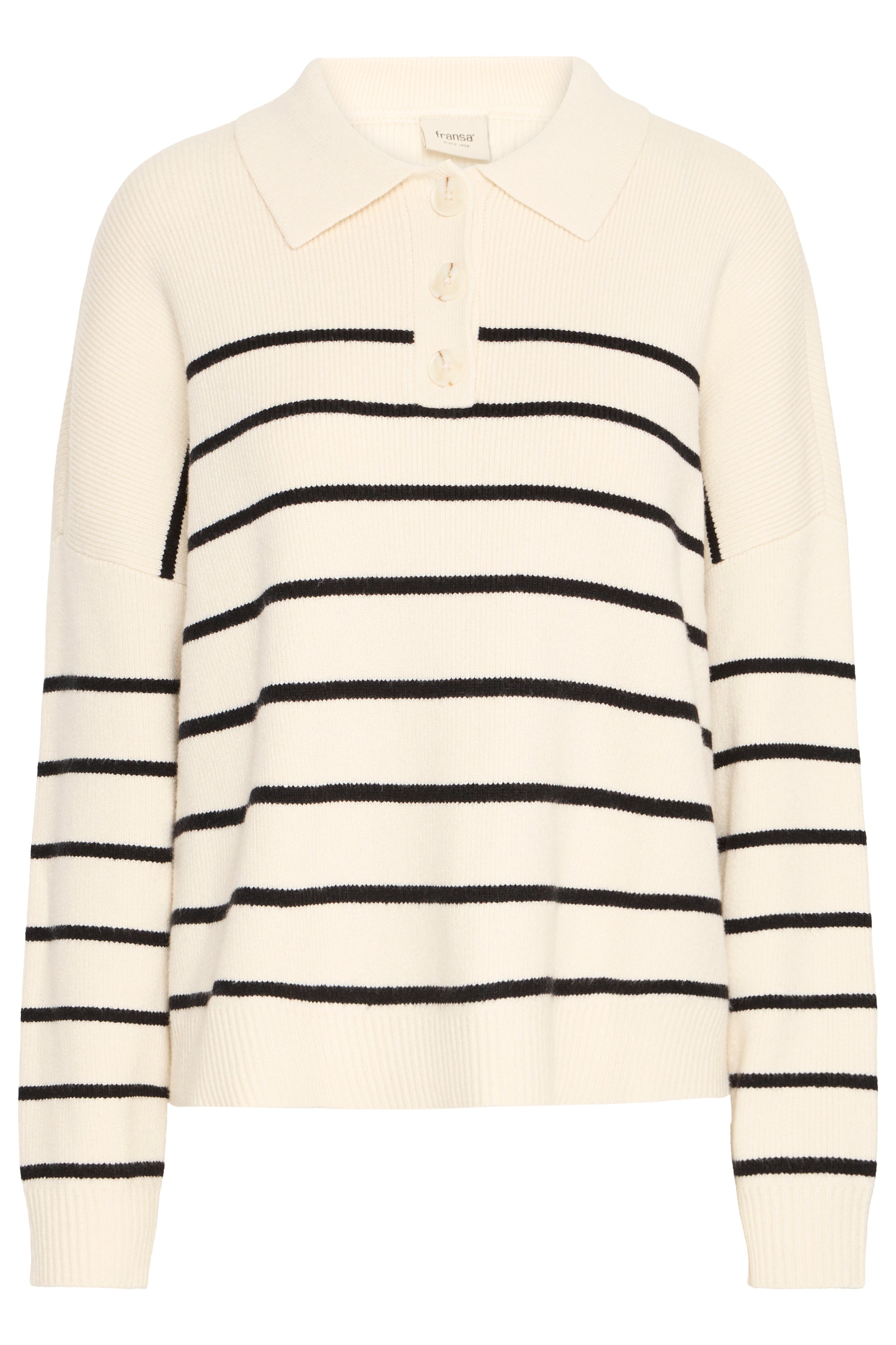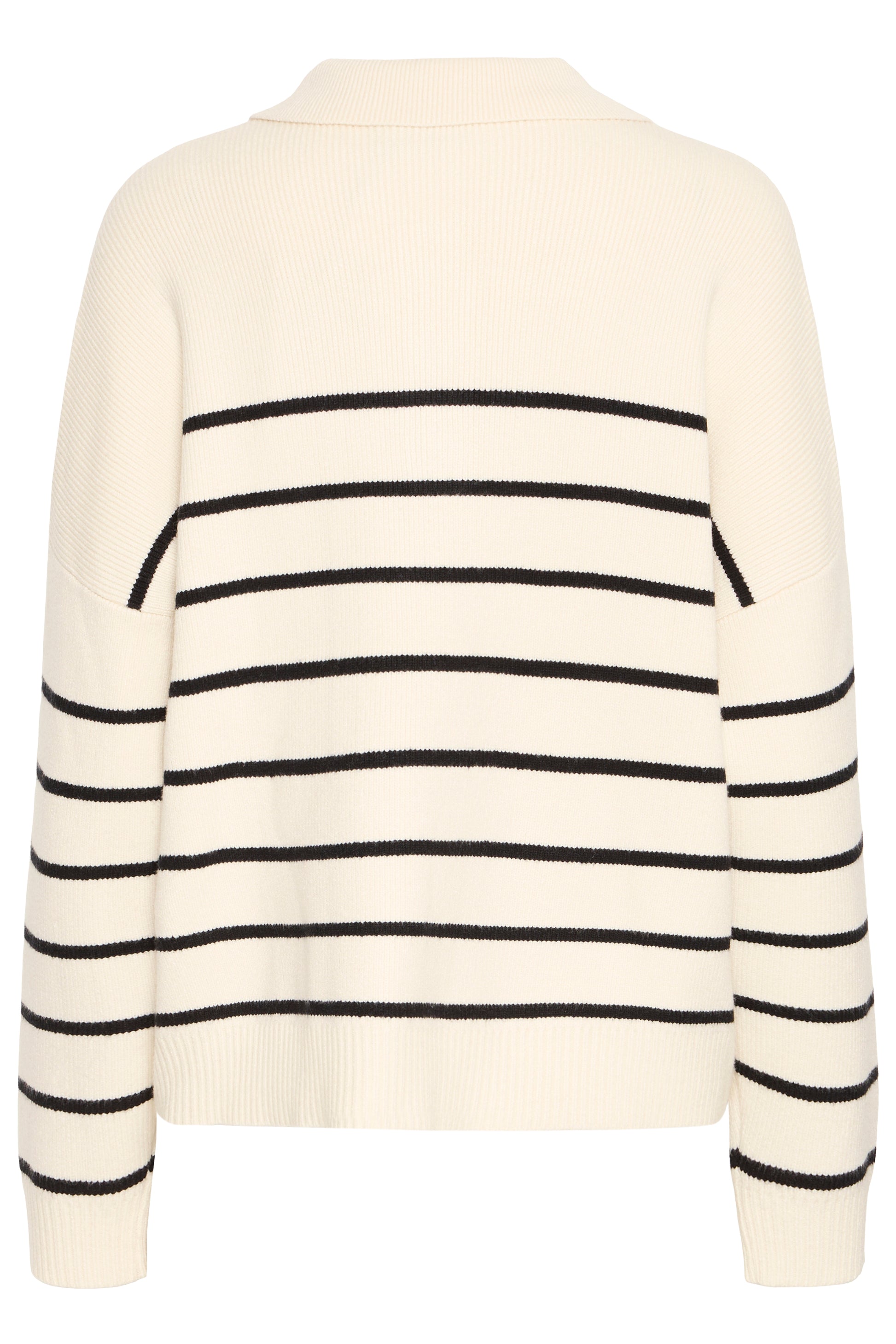 This polo-style knitted jumper features chic stripes and a button-up placket, combining classic design with modern style for a truly fashionable look. Crafted with a beautifully soft texture, this jumper offers an oversized silhouette; we recommend selecting a smaller size if you find yourself between sizes.