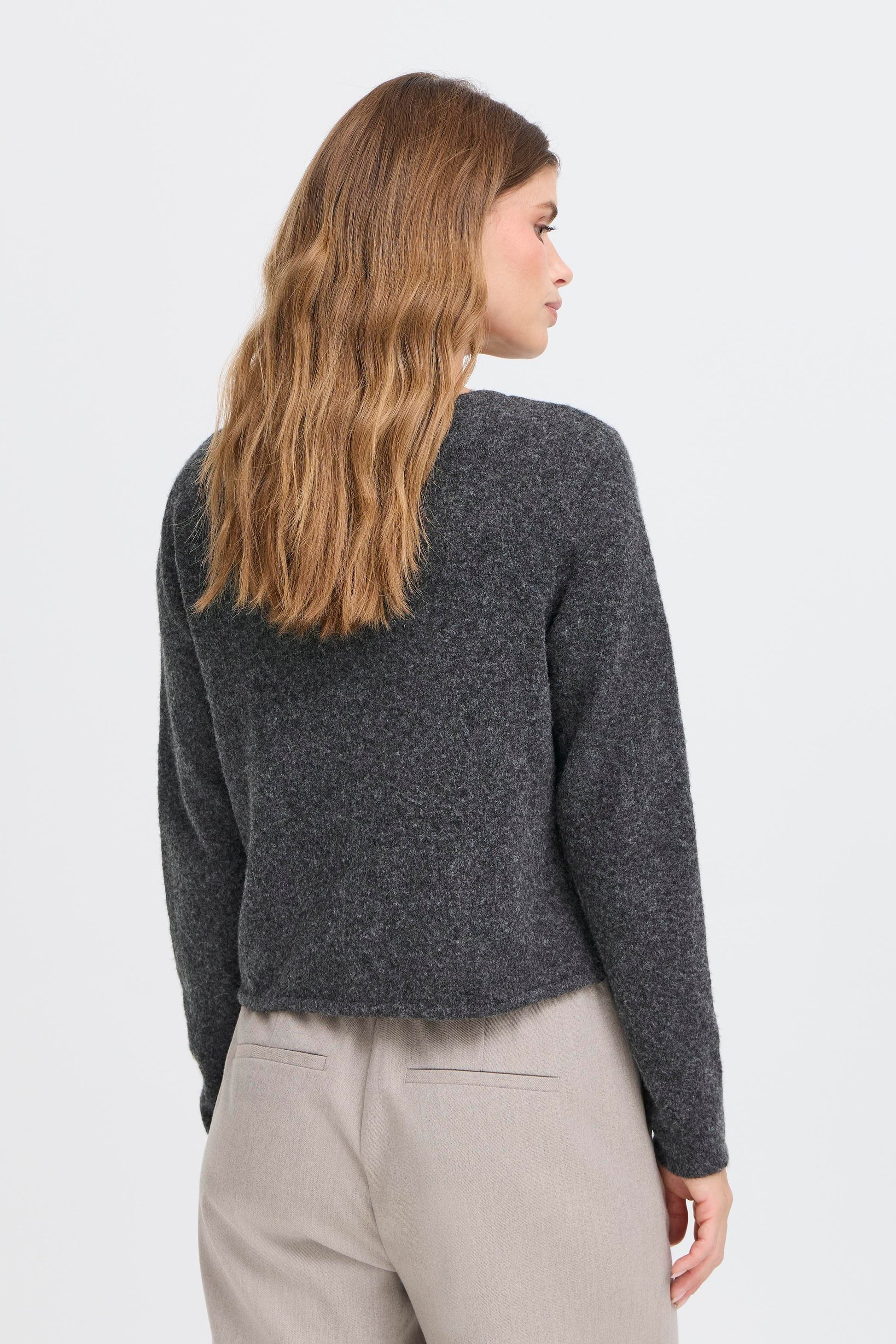 A key knit from Fransa. Ideal length for pairing with high-waisted pants, great for layering to stay cozy, or stylish enough to wear solo as a jumper.