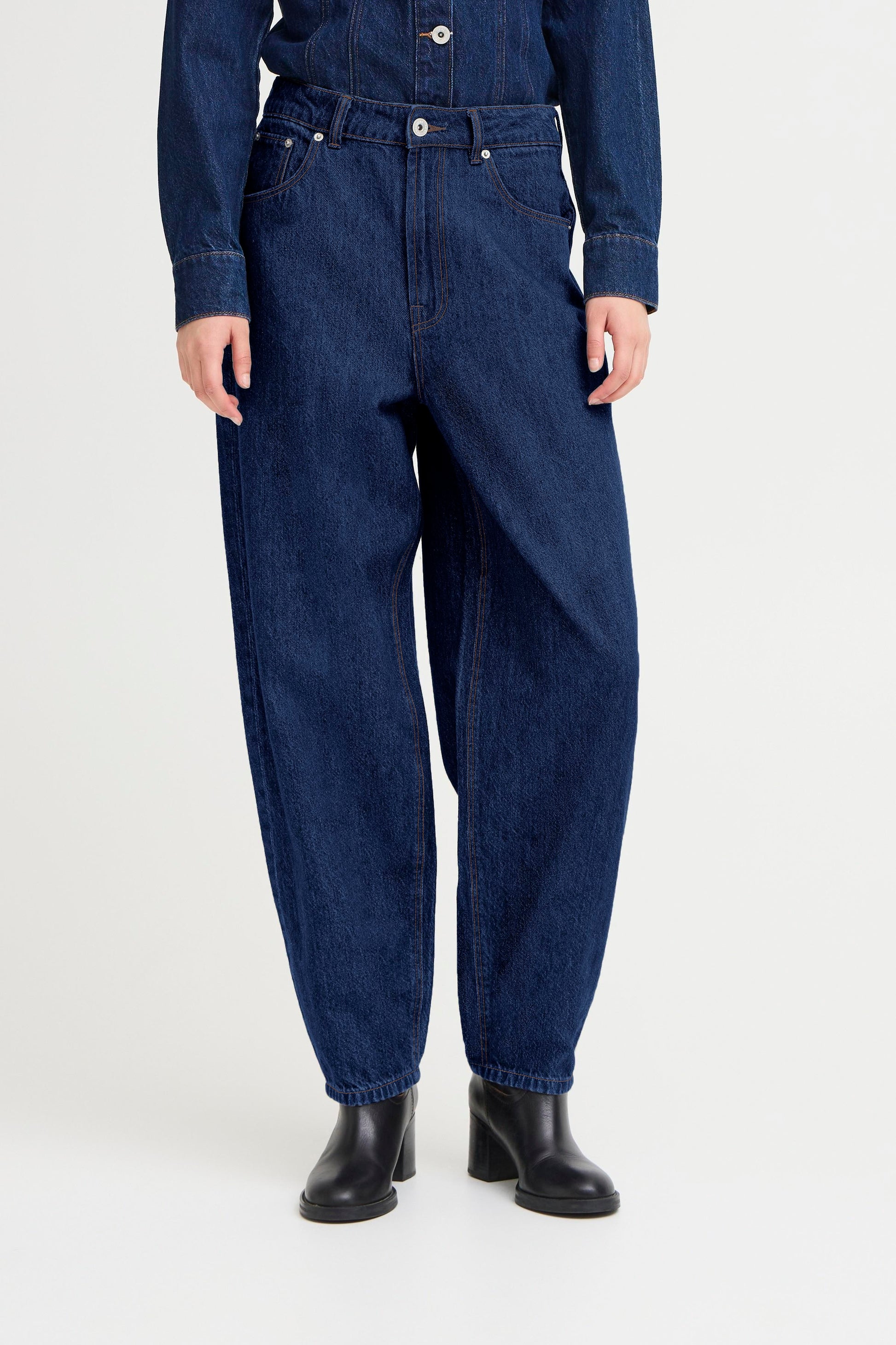 A barrel leg jean