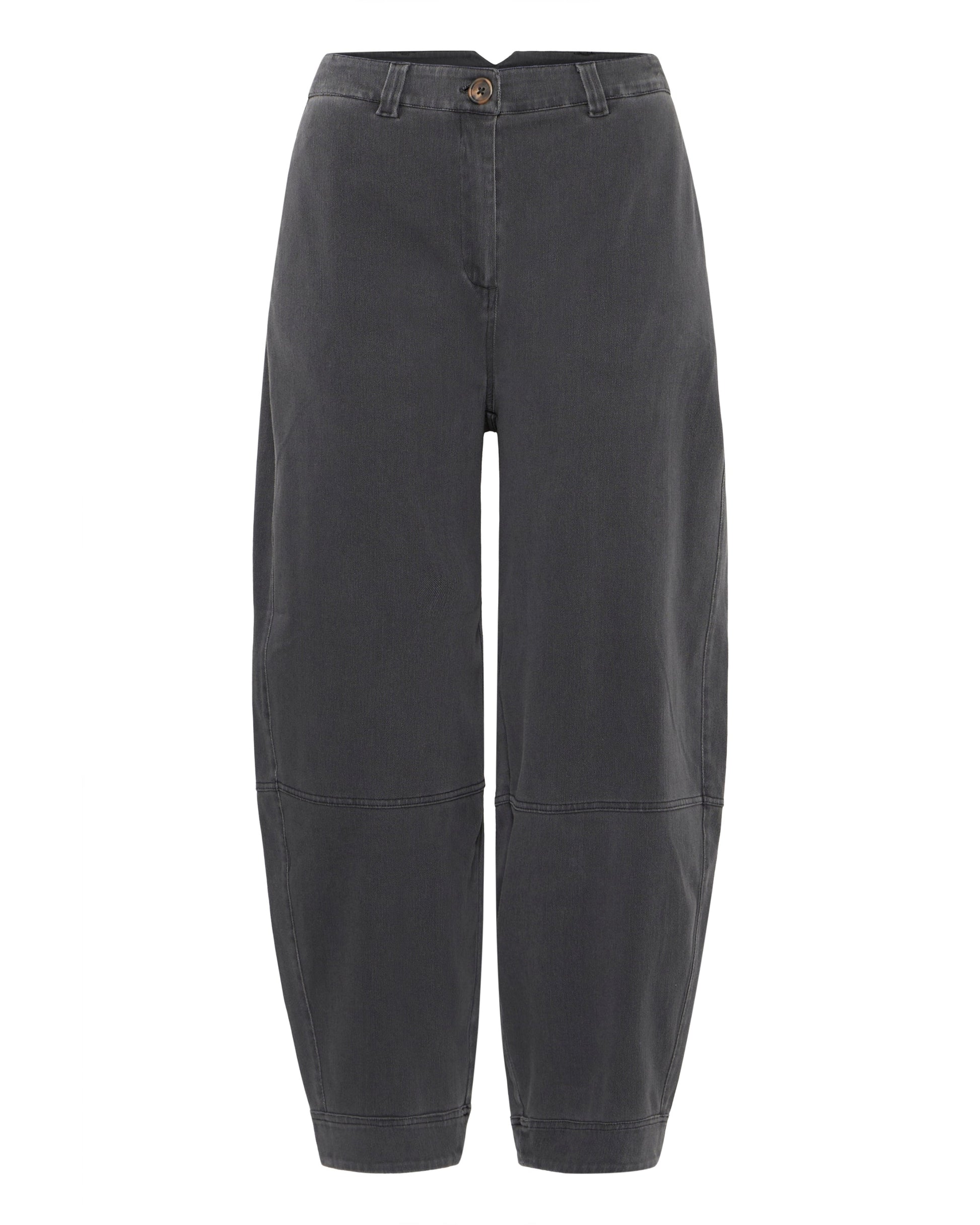 Elevate your everyday wardrobe with these versatile charcoal grey trousers. Crafted from durable cotton with a soft touch, they feature a relaxed fit through the legs with subtle tapering at the hem for a modern silhouette. The design includes a mid-rise waist with belt loops, a classic button-and-zip closure, and seam detailing at the knees for an understated utilitarian edge. Perfect for both casual outings and laid-back office days, these trousers pair effortlessly with everything from crisp shirts to relaxed tees.