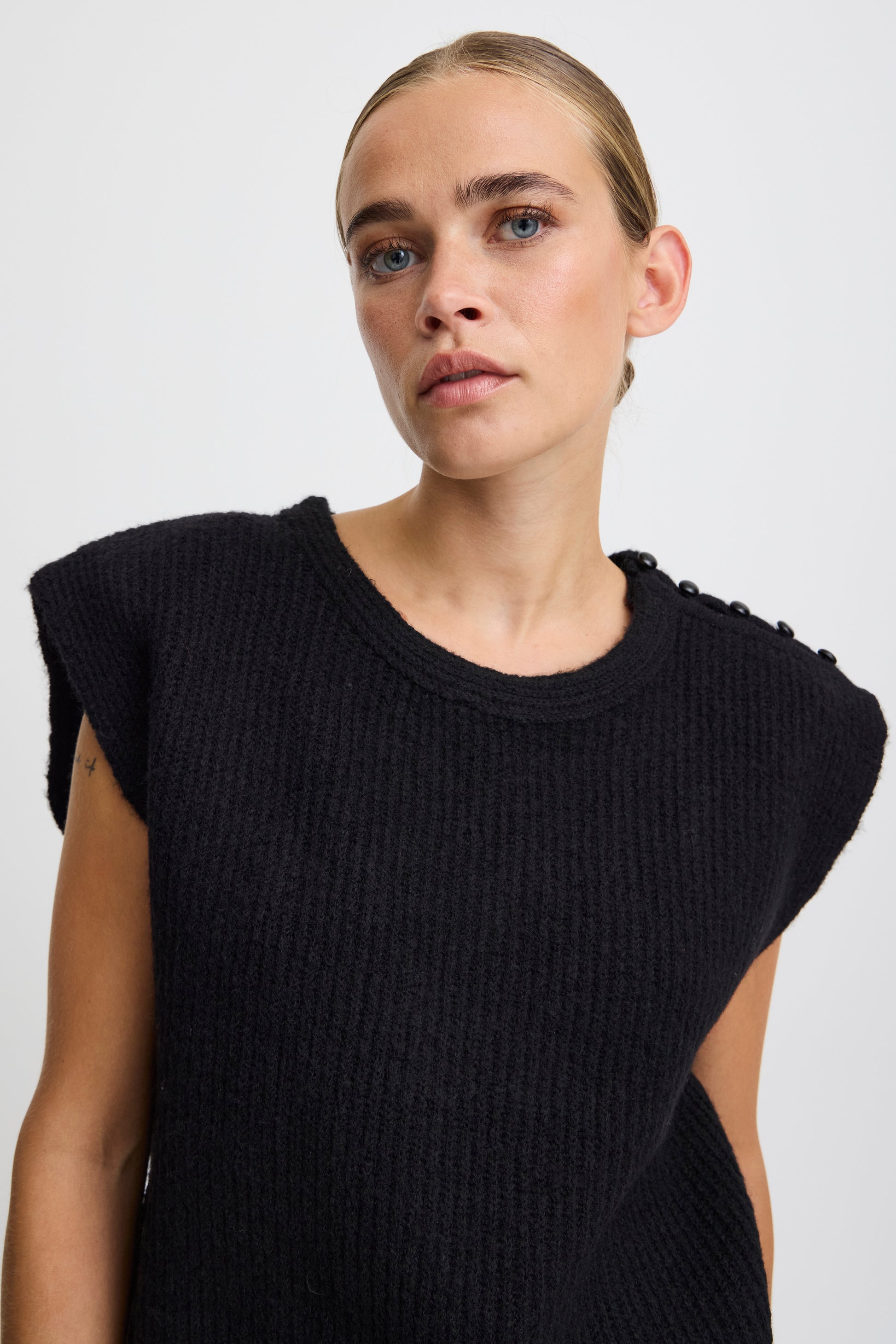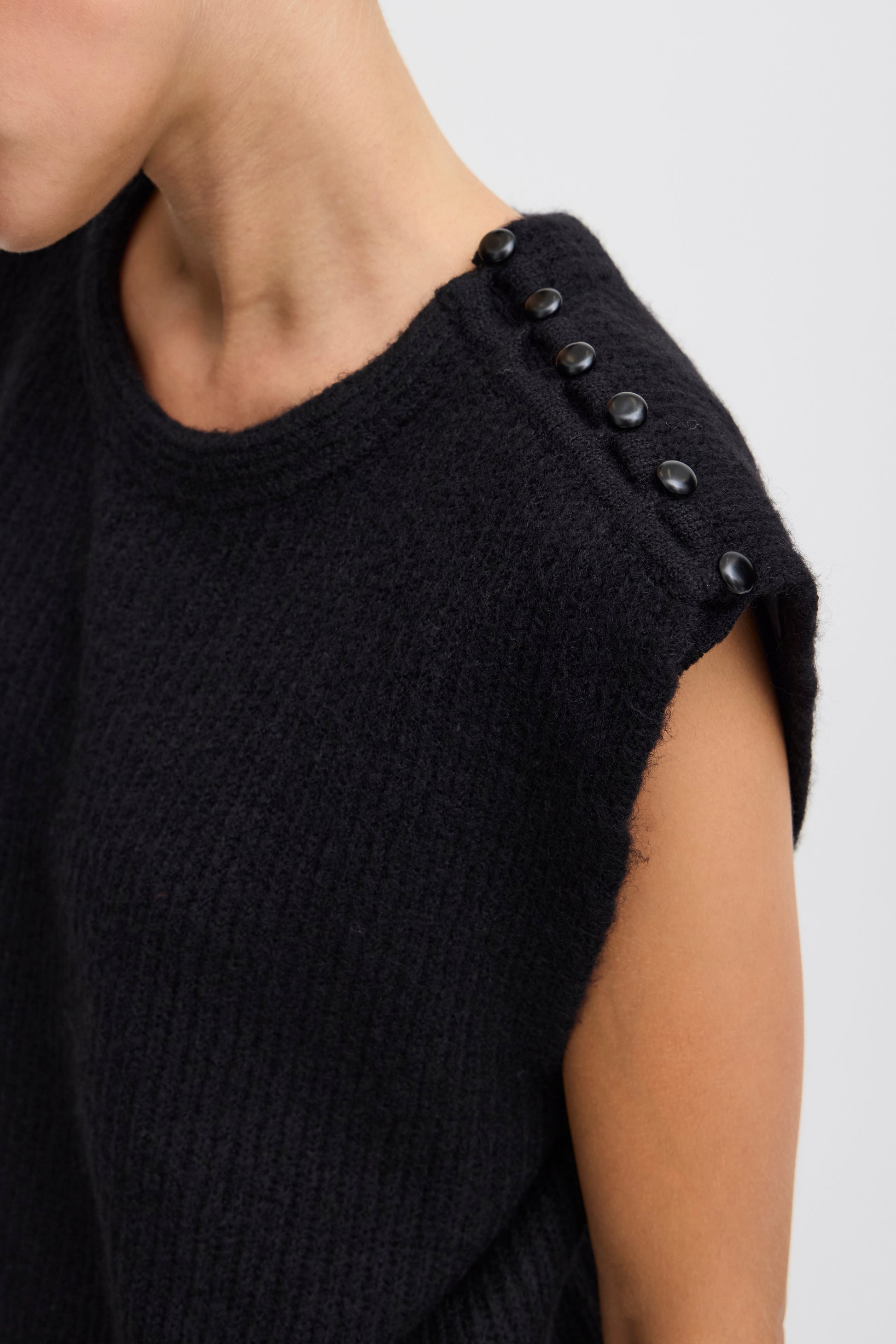 This gorgeous knitted vest by Ichi is the ultimate winter must have for layering in style. In a dark charcoal and tan, this is the perfect combination of this seasons tones.