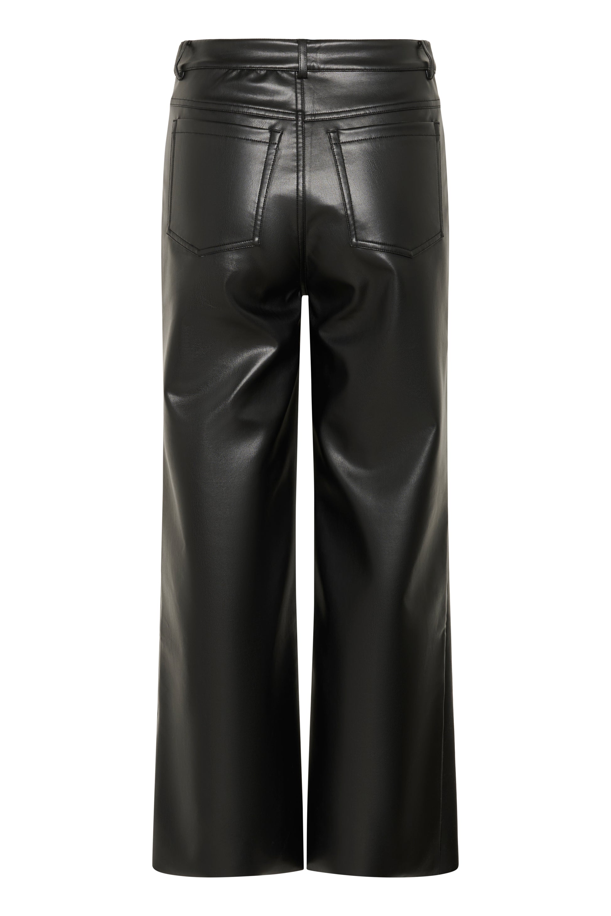 Wide-leg faux leather trousers offer a modern fit with front patch pockets, structured waistband and ankle length. The straight silhouette ensures stylish comfort for daily wear or evening occasions.