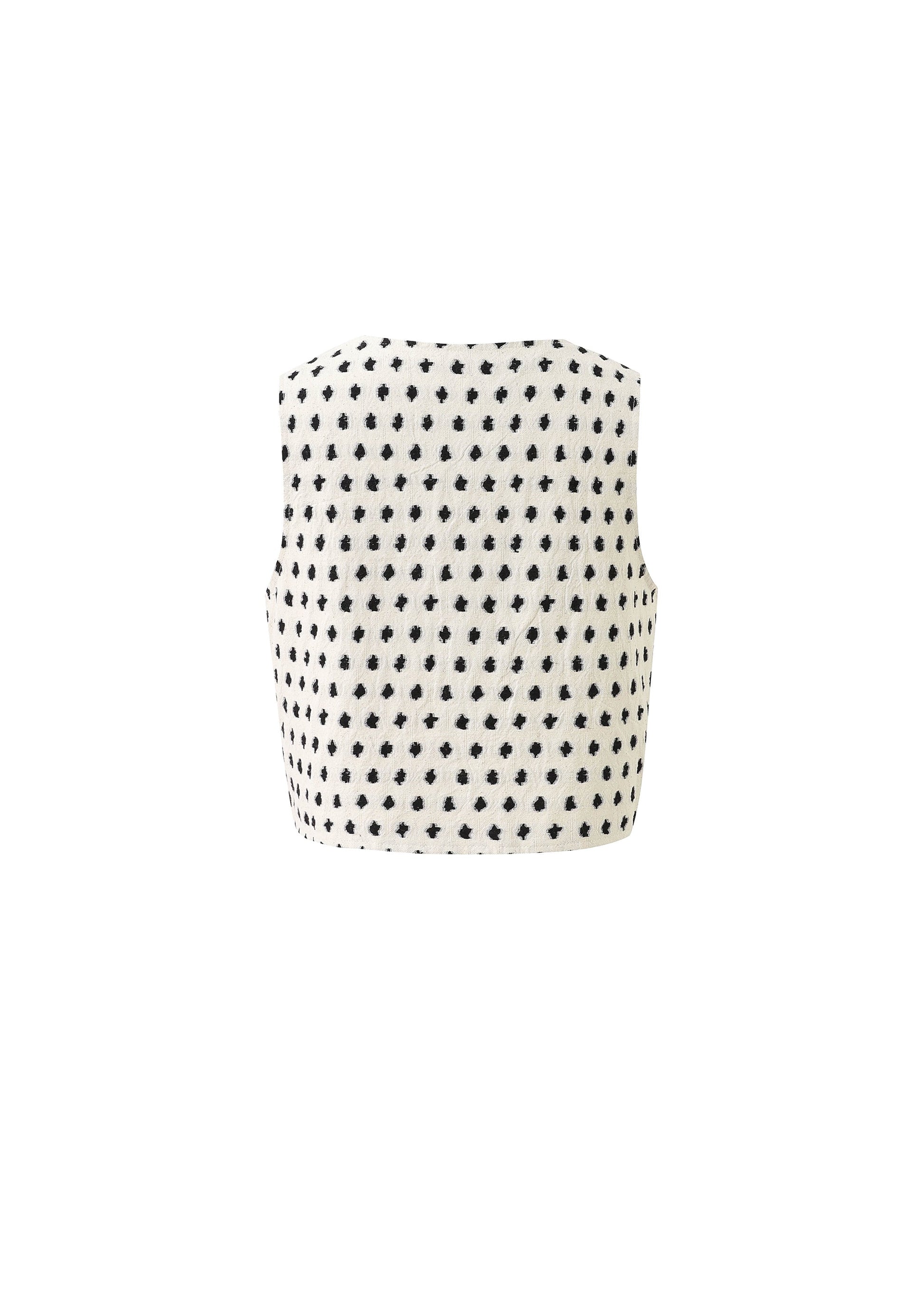 Sleeveless vest with contrasting geometric patterns and button closure