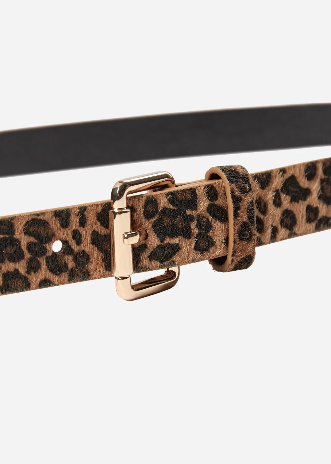 Soya Concept SEYMA 1 Belt is made from 100% Polyurethane. It has a classic buckle and a leopard print pattern.