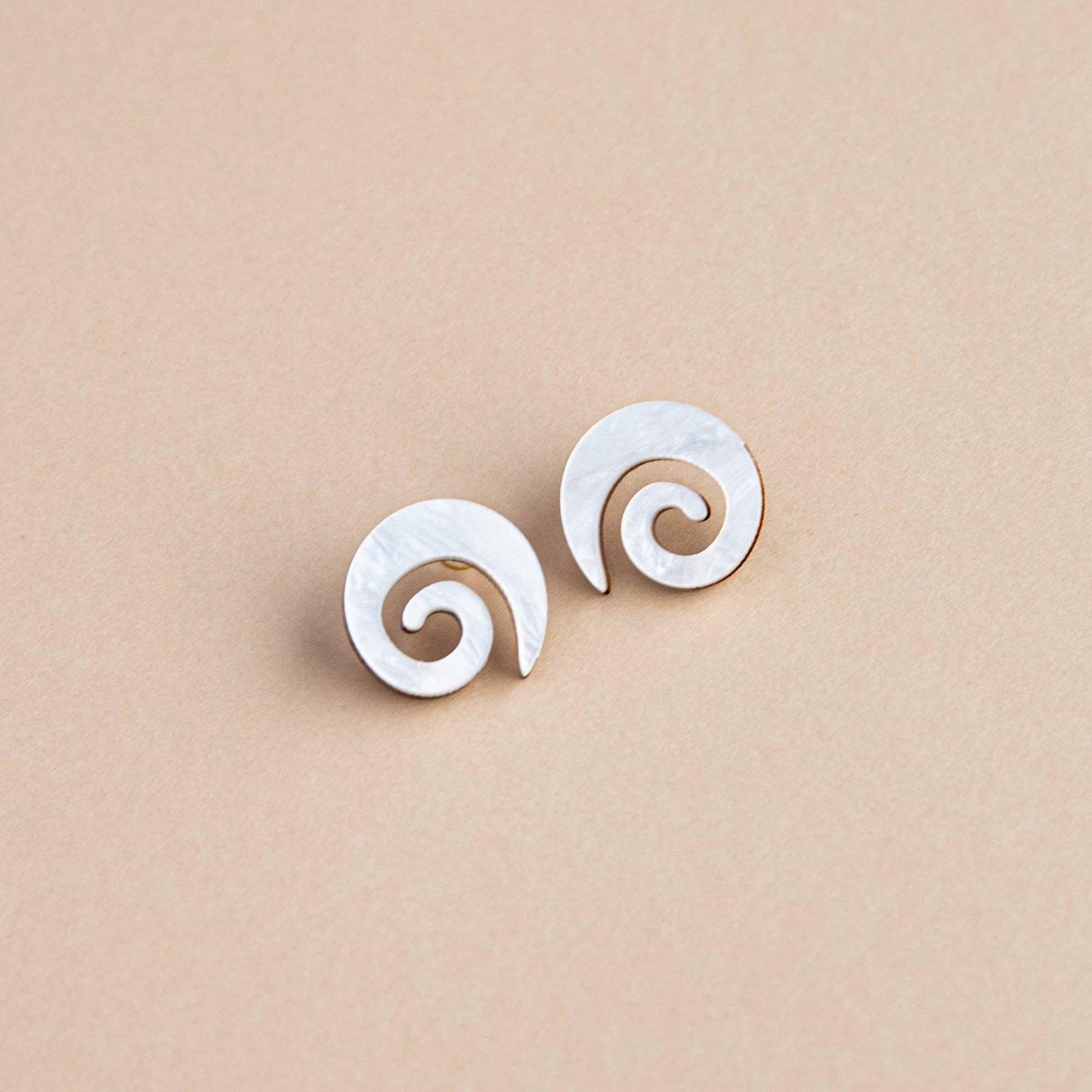 Each pair of these swirl stud earrings is designed and handcrafted in my studio from laser-cut wood and acrylic or brass.